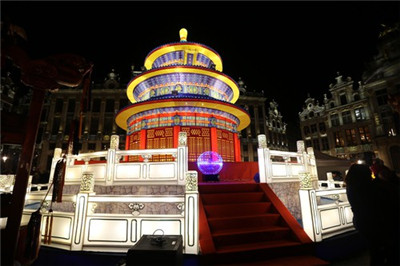 布魯塞爾大廣場上的中國“天壇”彩燈 劉軍攝